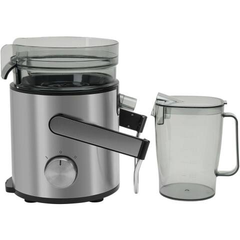 центробежная соковыжималка, мощность 1500 Вт, стакан для сока в комплекте, подача сока сразу в стакан, автоматический выброс мякоти, отсекатель пены сока, корпус из нержавеющей стали, возможность загрузки целых плодов
