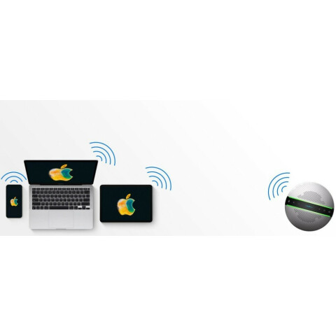 портативный спикерфон, интерфейс: Bluetooth/USB, 6 всенаправленных микрофонов, динамик 200-10000 Гц 3 Вт, до 18 часов активного разговора (акк. 4000 мАч), поддержка Windows, Android 6.0+, iOS 8.0+