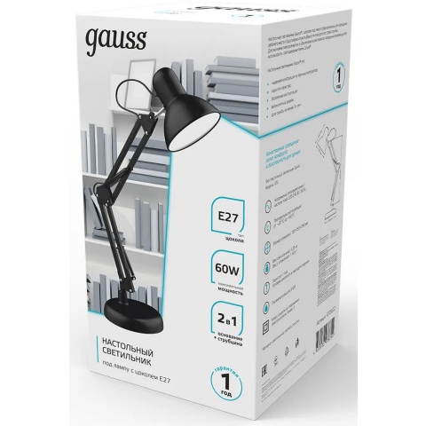Бренд: Gaussнастольный светильник, цоколь E27, мощность 60 Вт