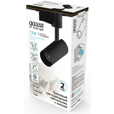 трековый светильник, на шину, мощность 12 Вт, цветовая температура 4000 K, световой поток 1100 Лм, IP20