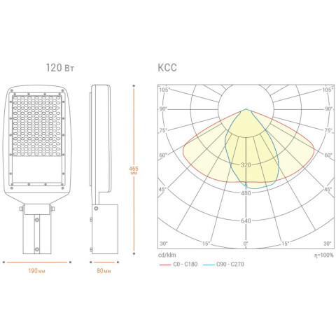 уличный светильник, консольный, мощность 120 Вт, световой поток 12000 Лм, IP65