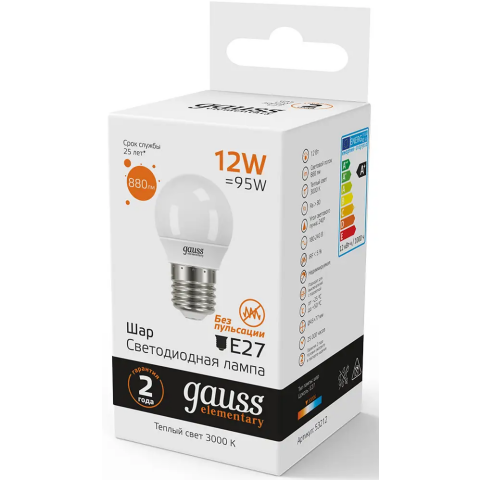 Светодиодная лампочка Gauss Elementary Шар 3000K (12 Вт, E27) 10шт.