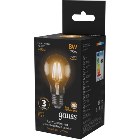 Светодиодная лампочка Gauss Filament A60 2700K (8 Вт, E27) 10 шт.
