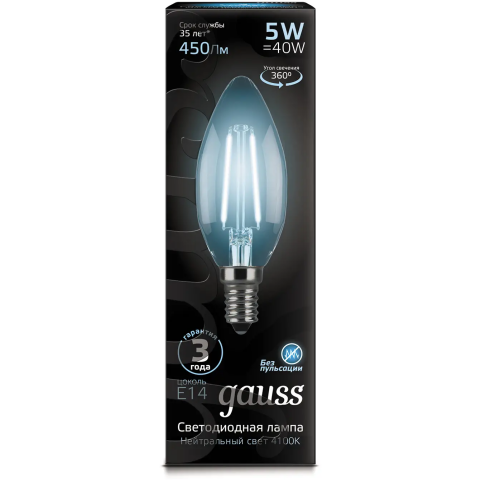 Светодиодная лампочка Gauss Filament Candle (5 Вт, E14) 10 шт.