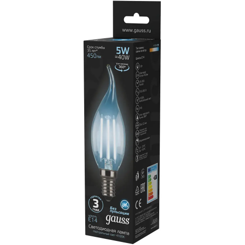 Светодиодная лампочка Gauss Filament Candle Tailed 4100K (5 Вт, E14) 10 шт.