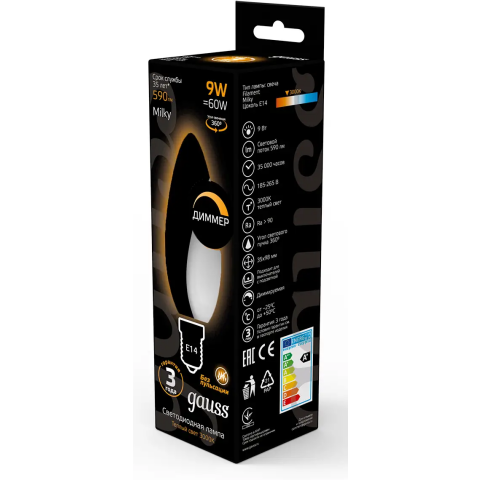 Светодиодная лампочка Gauss Filament Milky Dimmable 3000K (9 Вт, E14) 10 шт.