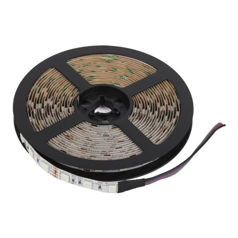 светодиодная лента длиной 5 м, RGB цвет, светодиоды SMD 5050, мощность 14.4 Вт/м, питание 12 В, IP20