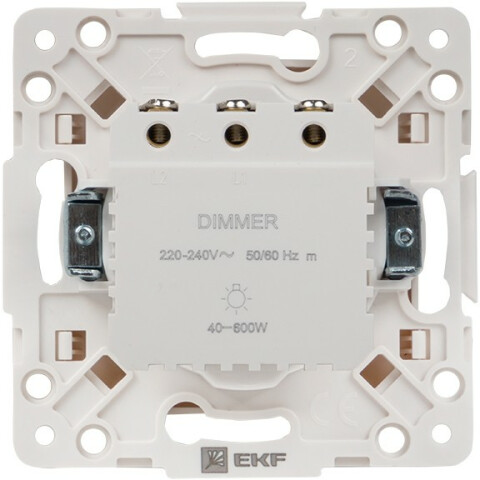 Бренд: EKFвстраиваемый светорегулятор, поворотно-нажимной, 40-600 Вт, безвинтовое подключение, IP20, белый