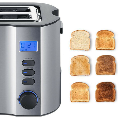 800 Вт, количество тостов: 2, функция размораживания, поддон для крошек, решетка для подогрева булочек