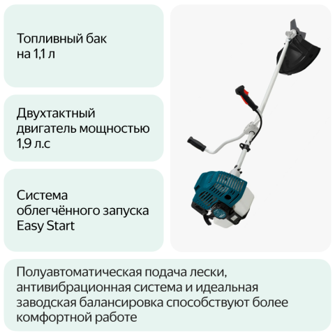 триммер, бензиновый двигатель, 9800 об./мин, Т-образная рукоятка
