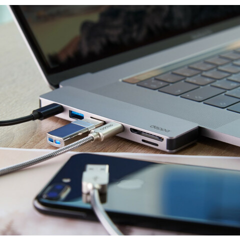 USB-C адаптер для MacBook 7-в-1, HDMI (4K@30Hz), Thunderbolt 3, 2x USB 3.0, USB-C, картридер (SD, microSD)