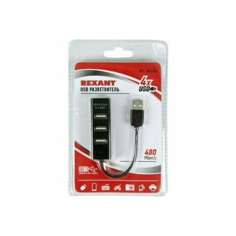 Бренд: Rexantпассивный USB-концентратор, 4x USB 2.0, подключение через USB 2.0