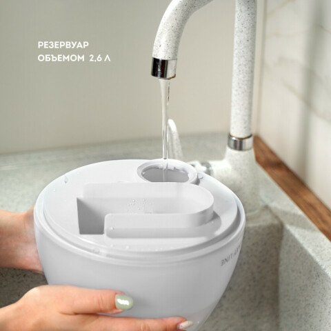 увлажнитель воздуха ультразвуковой, обслуживаемая площадь 30 кв.м, регулировка скорости работы, объем резервуара для воды 2.6 л