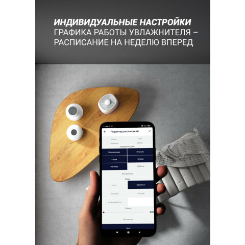 увлажнитель воздуха, обслуживаемая площадь 45 кв.м, регулировка скорости работы, дисплей, таймер, электронное управление, Wi-Fi, объем резервуара для воды 5.5 л