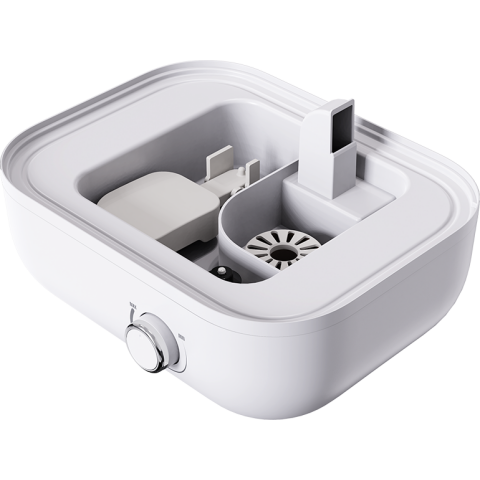 увлажнитель воздуха ультразвуковой, обслуживаемая площадь 25 кв.м, регулировка скорости работы, механическое управление, объем резервуара для воды 4.5 л, уровень шума 21 дБ