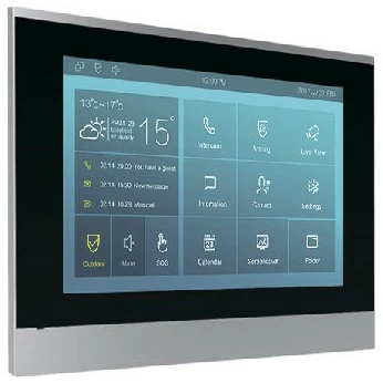 интерком-монитор, диагональ: 7", 1024x600, сенсорный экран, RAM: 1 Гб, Flash-память: 4 Гб, Ethernet: 2 x 10/100 Mб/с, DHCP, совместимость с РоЕ (IEEE802.3af), встроенный микрофон и динамик