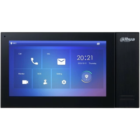 монитор видеодомофона разрешение 1024x600, ёмкостной сенсорный экран, 8ГБ встроенной памяти, функция просмотра IP камер, сжатие H.264, слот для microSD, сеть RJ-45, питание: DC 12В/PoE(802.3af)