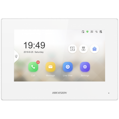 IP видеодомофон, 7" цветной сенсорный экран с разрешением 1024x600, просмотр видео с вызывных панелей и подключенных камер в режиме реального времени, PoE