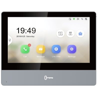 видеодомофон, цветной дисплей 7" IPS LCD, 1024x600, ёмкостный сенсорный экран, тревожные входы: 8, сетевой интерфейс: 1хRJ45 10M/100M, слот для карт Micro SD: до 32 ГБ, питание: 12 В DC/PoE IEEE802.3af