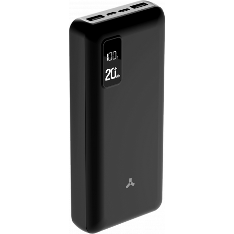 аккумулятор ёмкостью 20000 мАч, выход: 2xUSB, вход: microUSB, USB Type-C, максимальный ток: 2.1 А, индикатор заряда