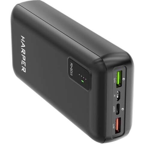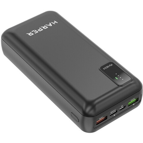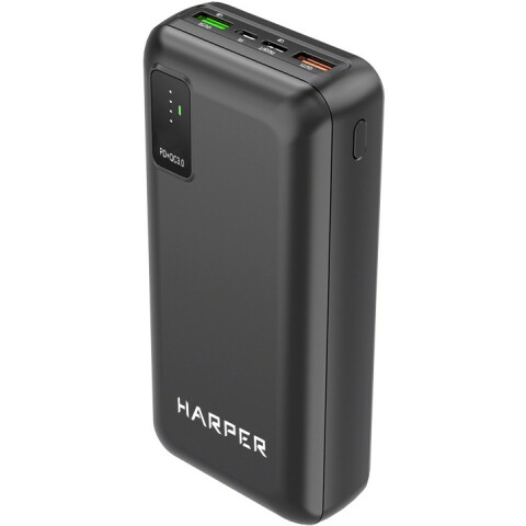 аккумулятор ёмкостью 30000 мАч, выход: 2xUSB, USB Type-C, вход: microUSB, USB Type-C, быстрая зарядка, индикатор заряда