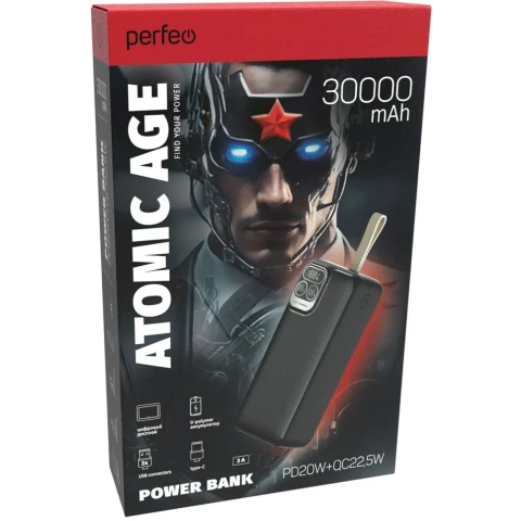 Внешний аккумулятор Perfeo Powerbank Atomic Age 30000mAh Black
