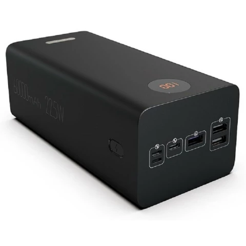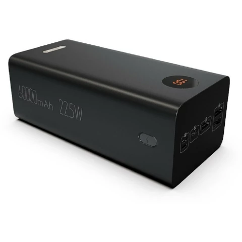 аккумулятор ёмкостью 60000 мАч, выход: 3xUSB, USB Type-C, вход: Lightning, microUSB, USB Type-C, максимальный ток: 12 А, быстрая зарядка, индикатор заряда