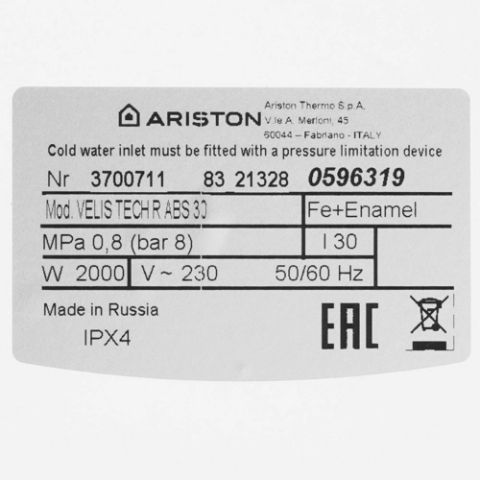Водонагреватель Ariston VELIS TECH R ABS 30_4