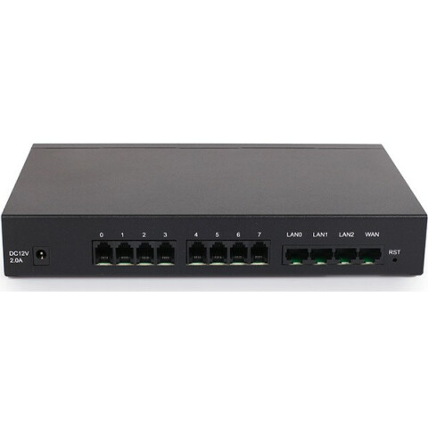 голосовой VoIP - шлюз, SIP, 8 портов FXO, 4 порта Ethernet,, поддержка SIP 2.0 (RFC 3261,3262,3264), режимы работы: коммутатор/маршрутизатор, поддержка VLAN 802.1P/802.1Q, управление через телефон (IVR)
