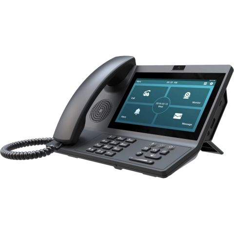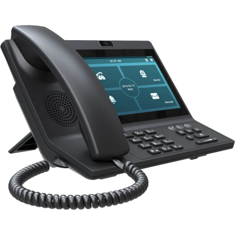 VoIP-телефон, 2 линии SIP, Wi-Fi, Bluetooth, цветной сенсорный экран, 7", 1024x600, Android, интерфейсы: 2xGigabit LAN, HDMI, USB Type-C, поддержка PoE, громкая связь, поддержка видеоконференций