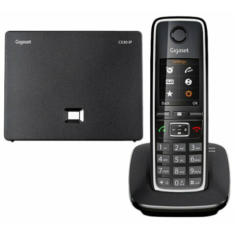беспроводной VoIP-телефон, протоколы связи: SIP, поддержка стандарта связи DECT, громкая связь (Hands Free), подключение гарнитуры, встроенный цветной LCD-дисплей, порты: WAN, LAN, FXO