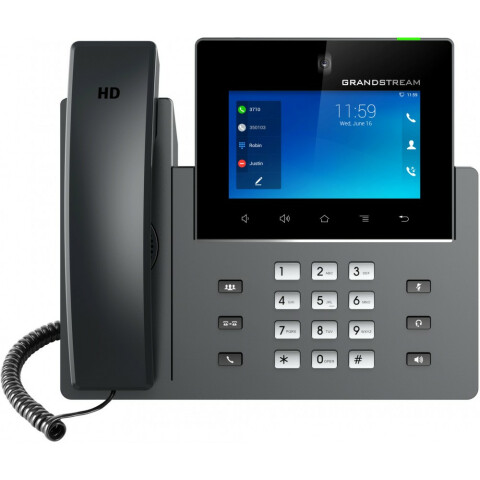 Бренд: GrandstreamWi-Fi IP видеотелефон, 5" экран 1280x720, камера 1Мп, 6-сторонняя HD аудиоконференция или 3-сторонняя HD видеоконференция, 16 SIP аккаунтов, 16 линий, HD аудио, Bluetooth, HDMI выход, гарнитурный порт, 2x Rj-45 PoE, USB, Andriod