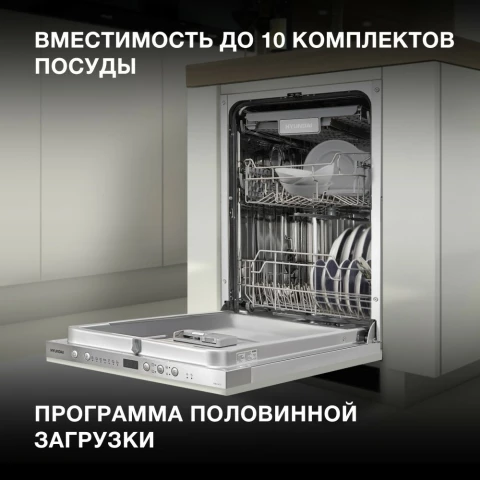 полностью встраиваемая посудомоечная машина, расход воды: 8 л, электронное управление, таймер отсрочки запуска, защита от протечек