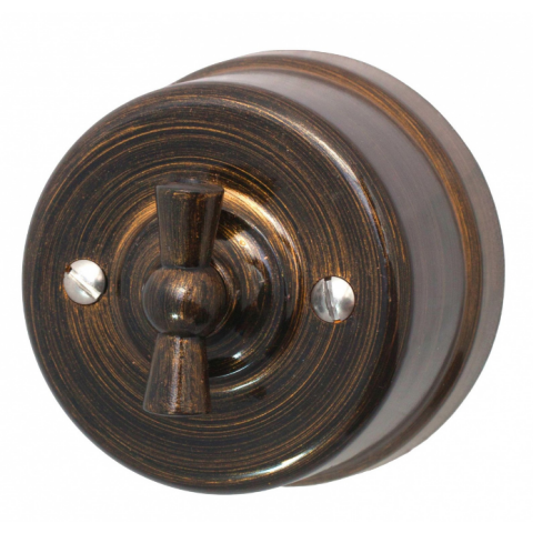 накладной выключатель, поворотный, 250 Вт, 1 клавиша, винтовое подключение, IP20, коричневый