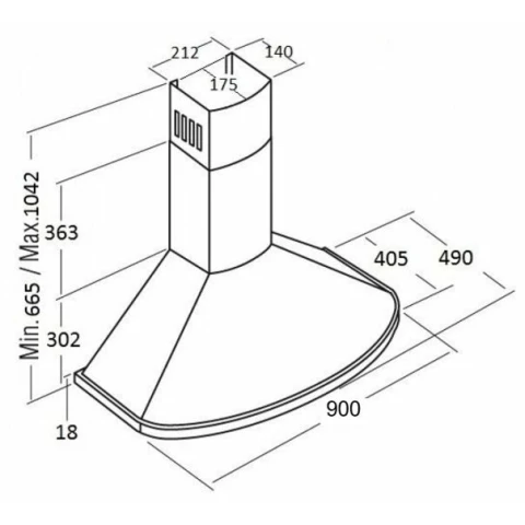 пристенная купольная вытяжка, количество скоростей: 3, производительность: 800 м3/ч, ширина встраивания: 89 см, механическое управление, таймер