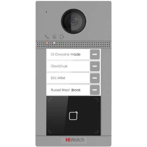 вызывная панель системы видеодомофонии, рассчитанная на 4-х абонентов, 2 Мп HD камера, PoE, датчик контроля вскрытия, веб-интерфейс, Wi-Fi 2.4 ГГц, уровень защиты IK08
