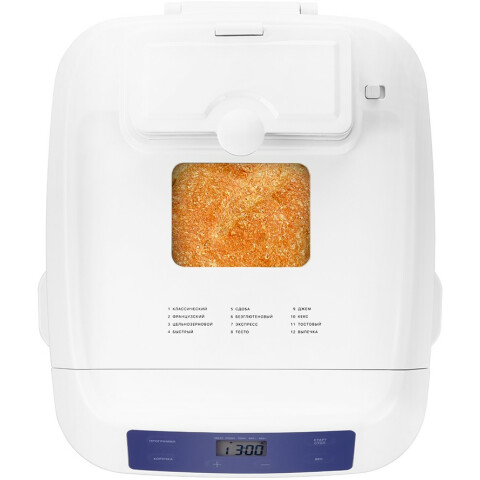 мощность: 550 Вт, максимальный вес выпечки: 800 г, регулировка веса выпечки, форма выпечки: буханка, выбор цвета корочки