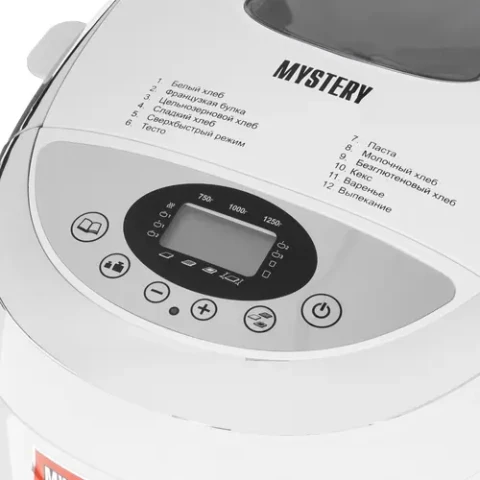 мощность: 700 Вт, максимальный вес выпечки: 1250 г, регулировка веса выпечки, форма выпечки: буханка, выбор цвета корочки