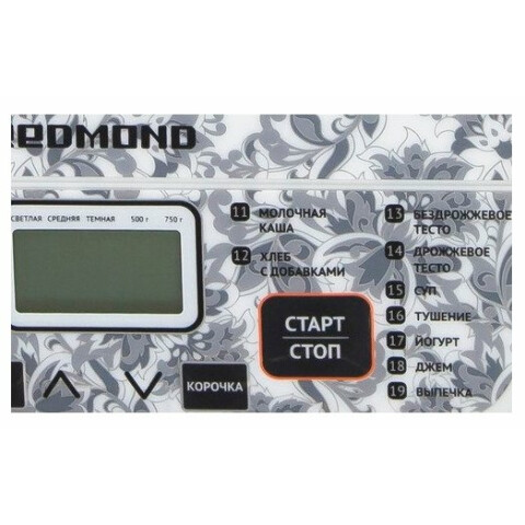 вес выпечки 750 г, бездрожжевая выпечка, варенье, кекс, французский багет, хлеб из муки грубого помола, таймер, регулировка веса выпечки, замес теста, выпечка в форме буханки, 19 автоматических программ