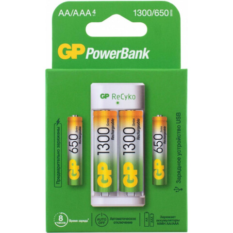 Зарядное устройство для аккумуляторов GP PowerBank E211 + 2x AA 1300mAh + 2x AAA 650mAh_0