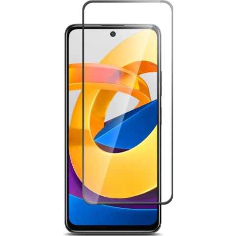 защитное стекло для экрана, совместимость: Poco M4 Pro, чёрная рамка, 2.5D