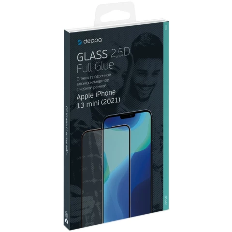 защитное стекло для экрана, совместимость: Apple iPhone 13 mini, чёрная рамка, толщина 0.3 мм, 2.5D