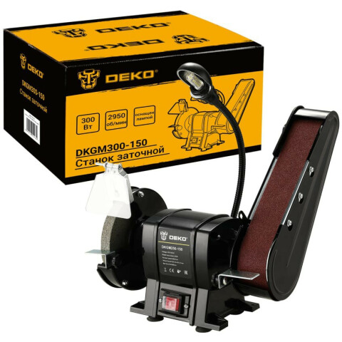 заточная машина стандартного типа, мощность 300 Вт, 2950 об/мин, круг 150 x 20 мм, посадочный диаметр 12.7 мм, подсветка
