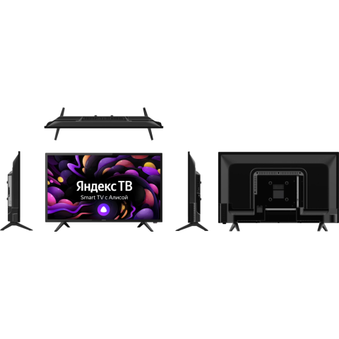 диагональ 32", разрешение HD (1366x768), 60 Гц, поддержка DVB-T2, Wi-Fi, Bluetooth, 2xHDMI, 2xUSB, Smart TV Яндекс ТВ