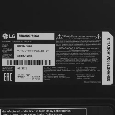 Бренд: LGдиагональ 55", разрешение 4K UHD (3840x2160), 60 Гц, HDR 10 Pro, поддержка DVB-T2, Wi-Fi, Bluetooth, 3xHDMI, RJ-45, 2xUSB, Smart TV webOS