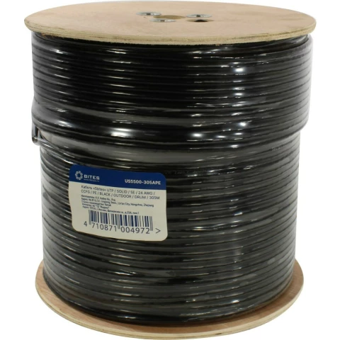 кабель неэкранированный (UTP), категория 5e, одножильный, 4 пары, 24 AWG, проводник: CCAG (Copper Clad Aluminum and Argentum Powder – алюминий плакированный медью, с использованием серебряной пудры), оболочка PVC+PE, 305м