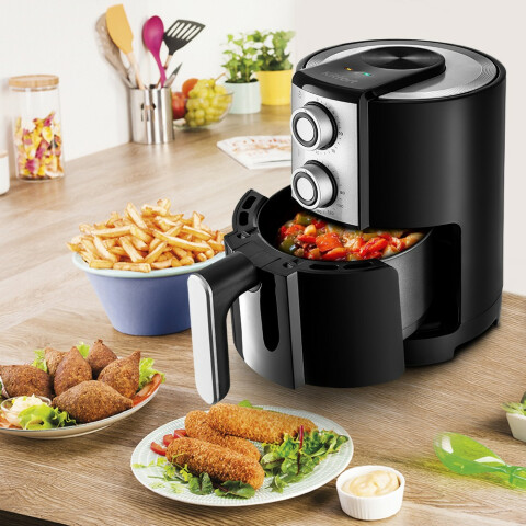 аэрогриль/ аэрофритюрница, мощность: 1000 Вт, полезный объем: 1.8 л, механическое управление, регулировка температуры
