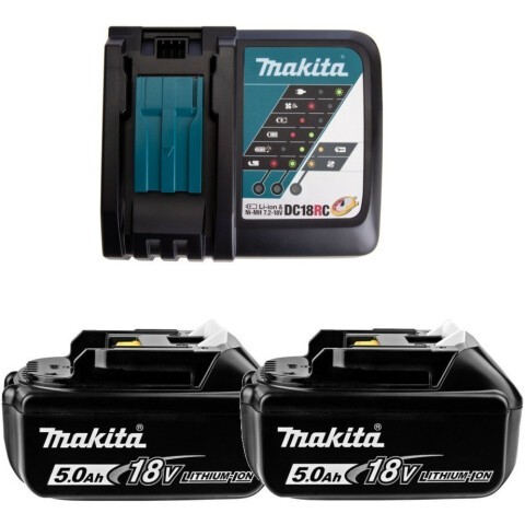 2 аккумуляторные батареи 18 В / 5 Ач (модель BL1850B) с зарядным устройством DC18RC, для аккумуляторного инструмента Makita
