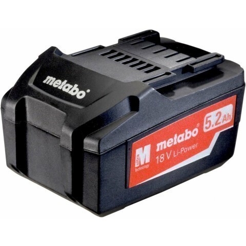 аккумулятор Li-Ion ёмкостью 5.2 А*ч, напряжение 18 В, может долго храниться без потери заряда, для аккумуляторного инструмента Metabo