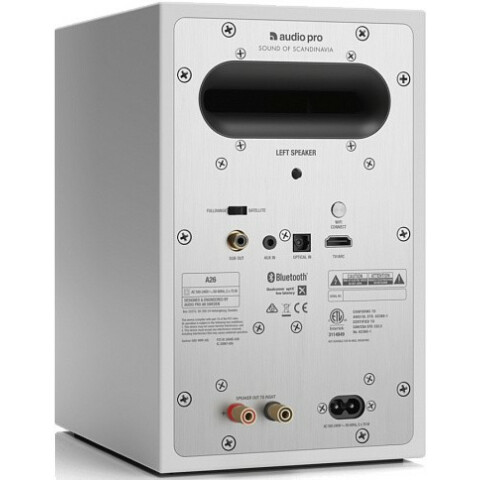 активная полочная акустическая система для телевизора, Wi-Fi, Bluetooth 5.0, 45-20000Гц, 2 динамика, входы: mini jack 3.5мм, оптический Toslink; пульт ДУ